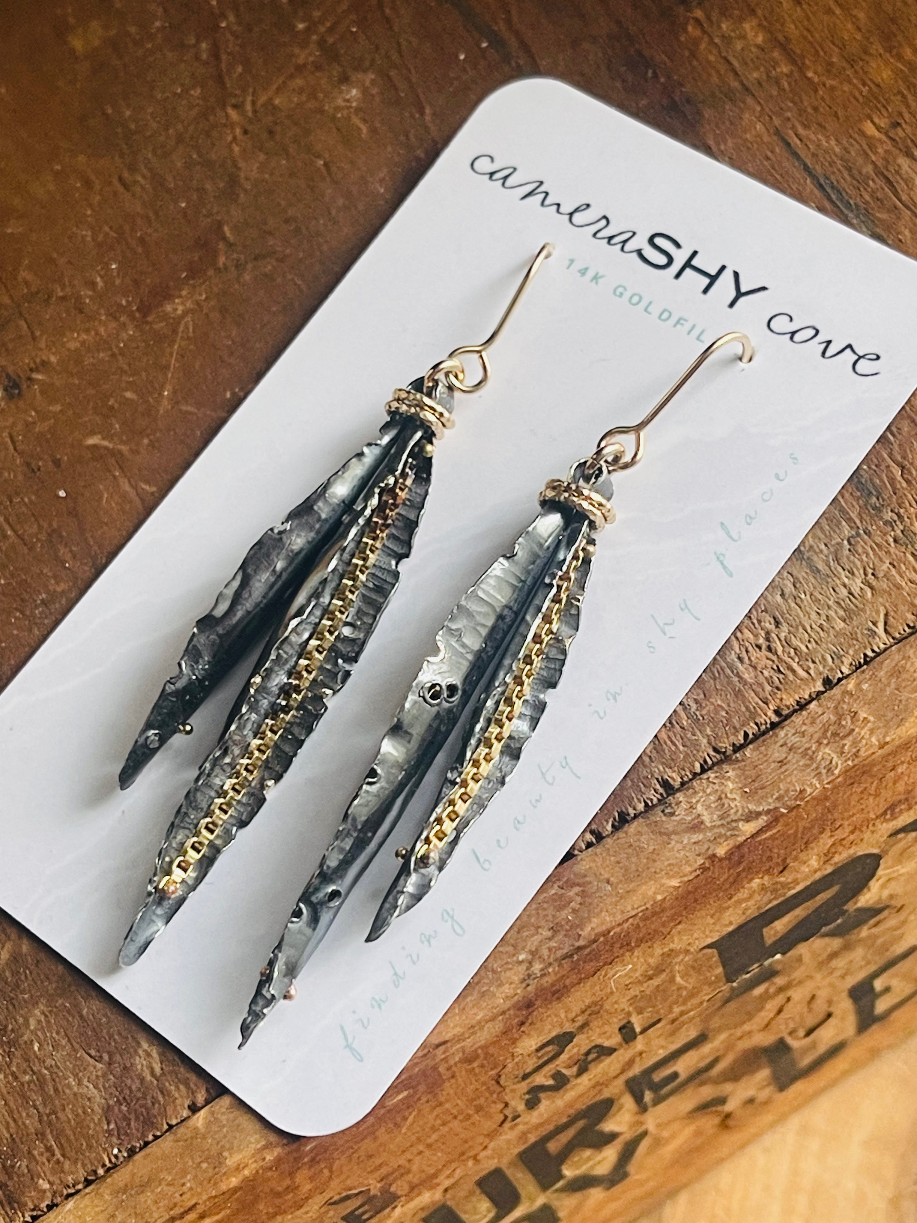 - Mixed metal: 14K Goldfill inlay chain details + earwires