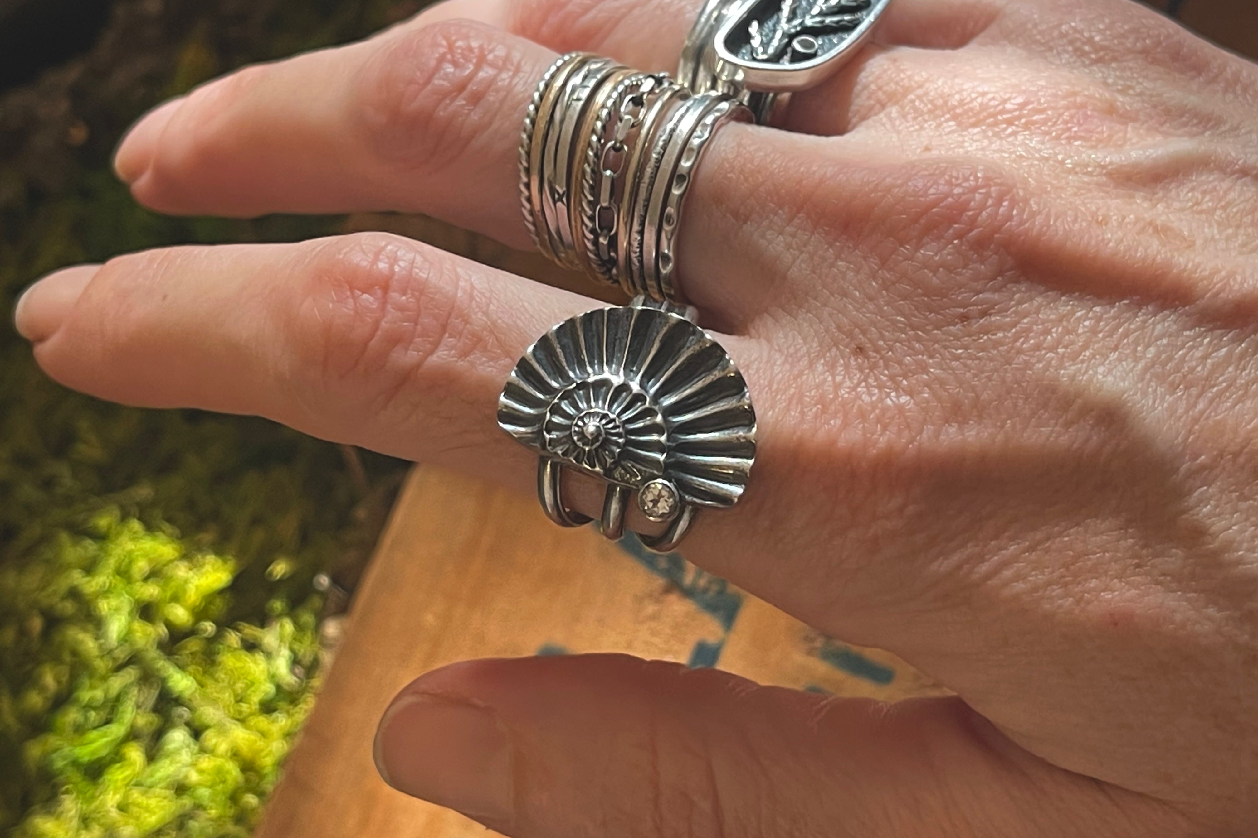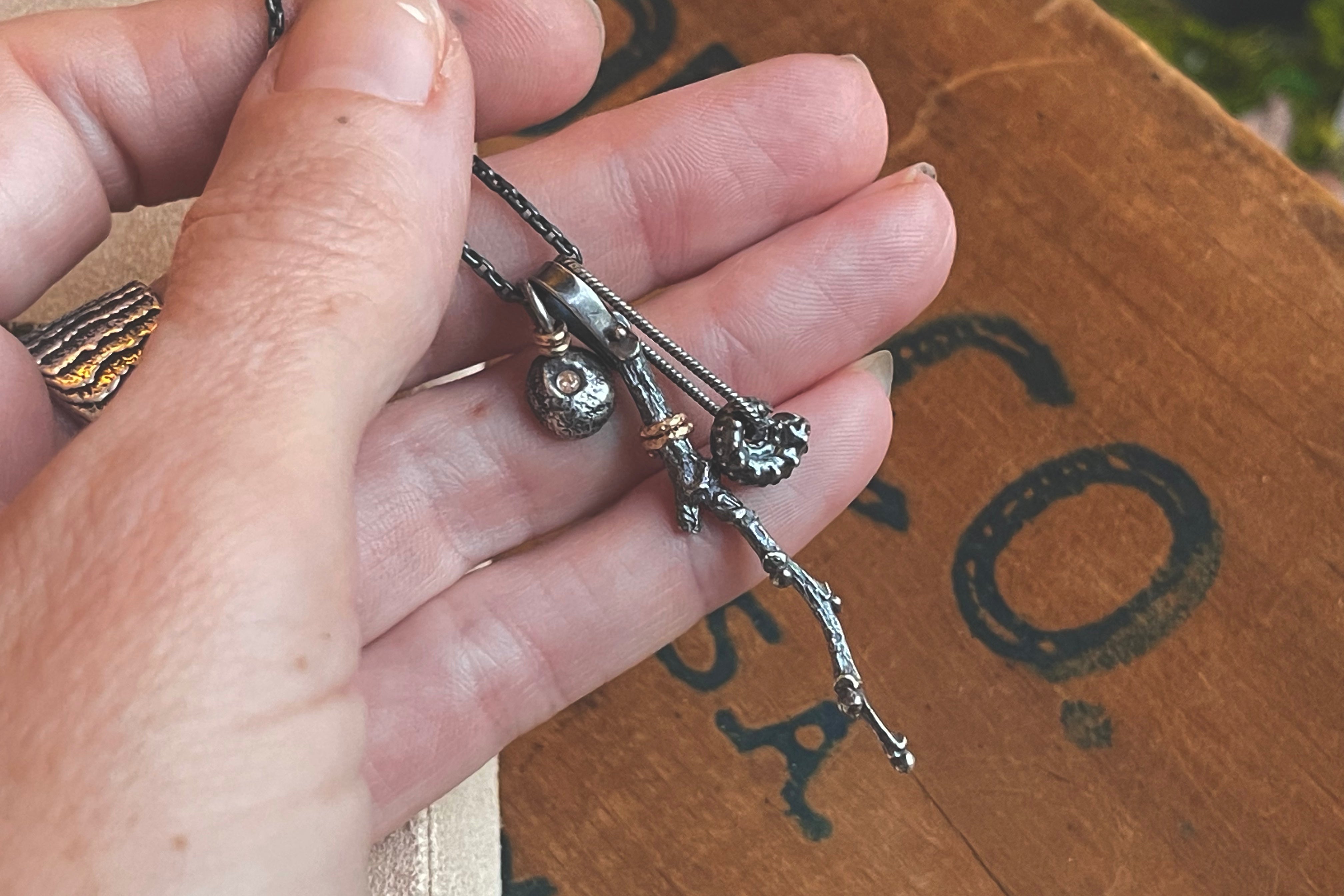 Based on lyrics from Brandon Lake's "graves into gardens" song, this collection features various cast bone vertebrae, fossils, and organics alongside flowering succulents. It celebrates the beautiful redemption of renewal and the promise of new life beyond the burying ground. From spiritual reflections to mineralogy and geology realities, these ideas swirl circular in stories undeniably filled with hope.